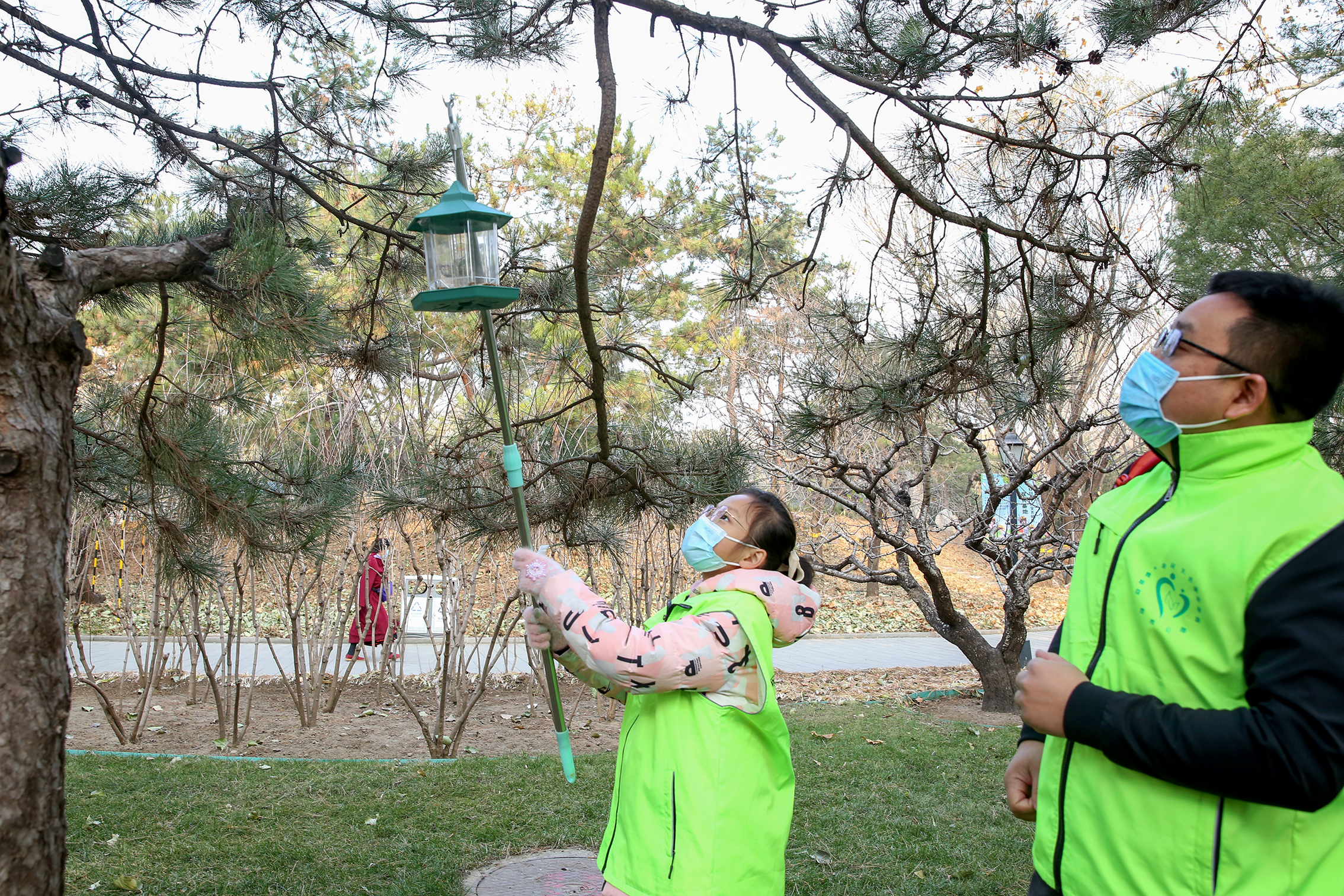 在大树上挂小鸟喂食器,给紫薇、梧桐树穿上“绿衣服”,把收集的落叶粉碎后装入收集箱堆肥再利用……近日,一场冬季义务植树尽责活动在北京双秀公园“互联网+全民义务植树”基地举行,热火朝天的景象成为公园里的一道风景线。