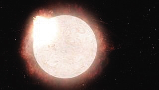 一颗红色超巨星发生超新星爆发的艺术图。