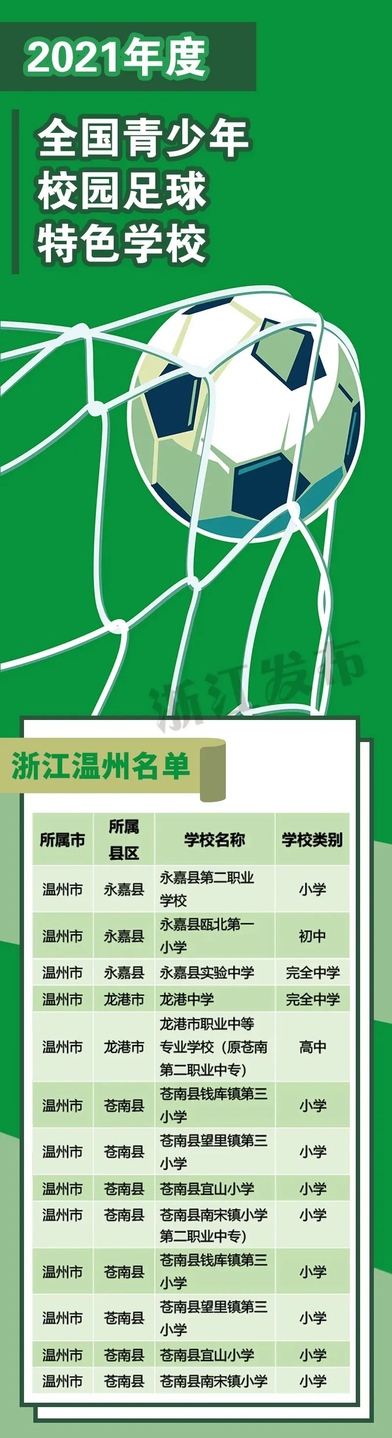 近日,教育部发布新一批全国青少年校园足球特色学校、全国足球特色幼儿园名单。温州哪些学校被认定并命名?一起来瞧瞧~