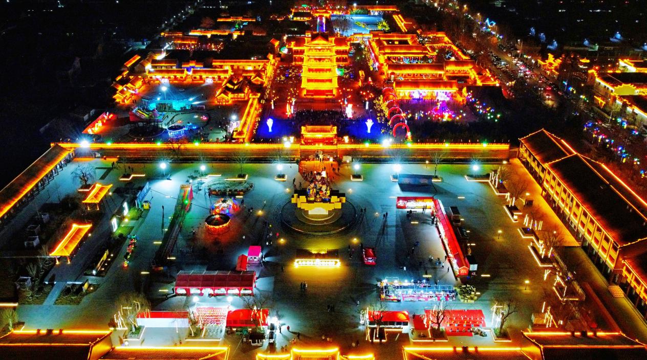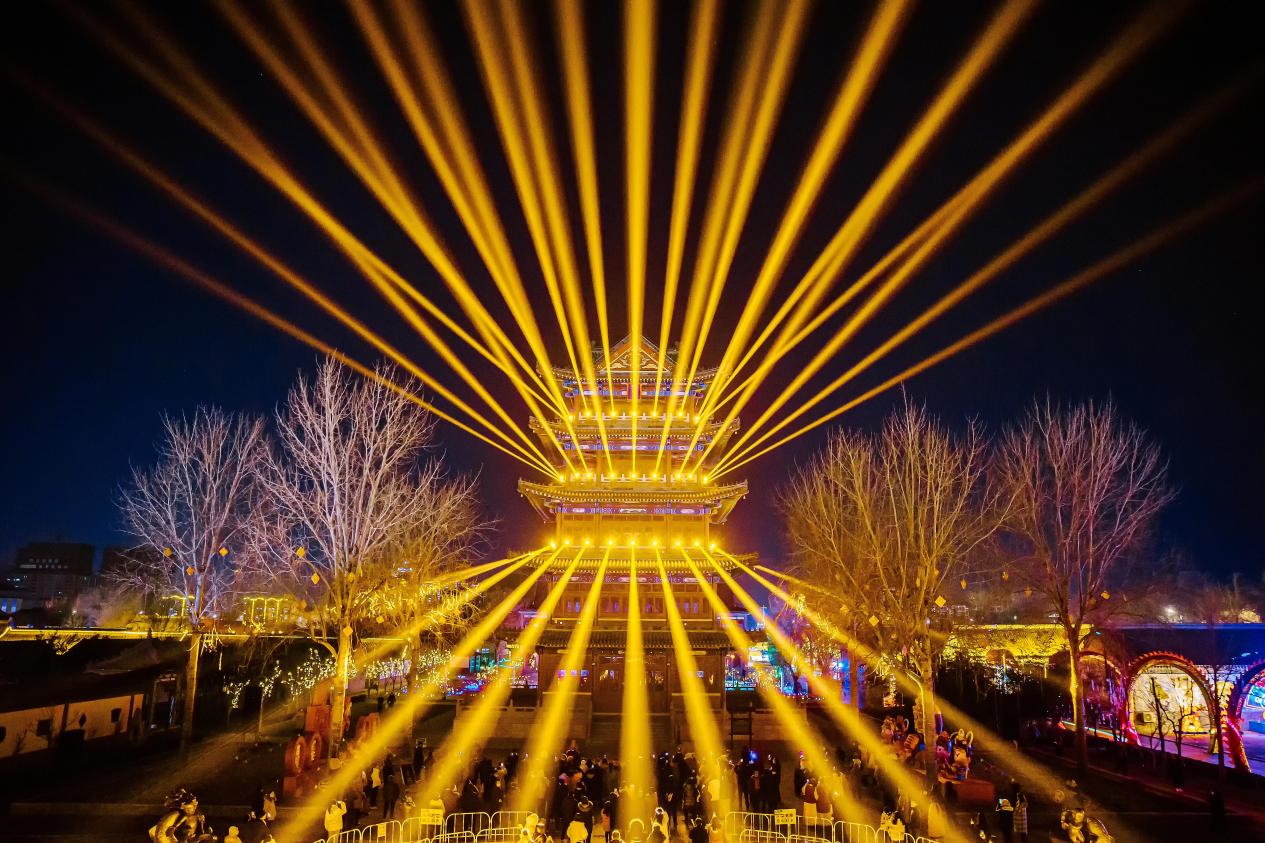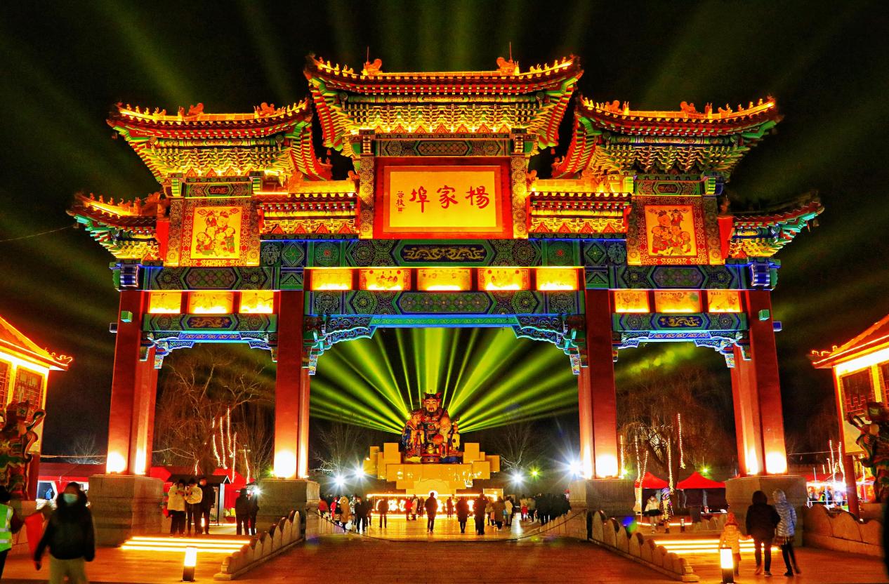 华灯初上夜未央,霓虹璀璨耀古城。新春伊始,2022年杨家埠民间艺术大观园夜间开放,绚烂“灯”场。