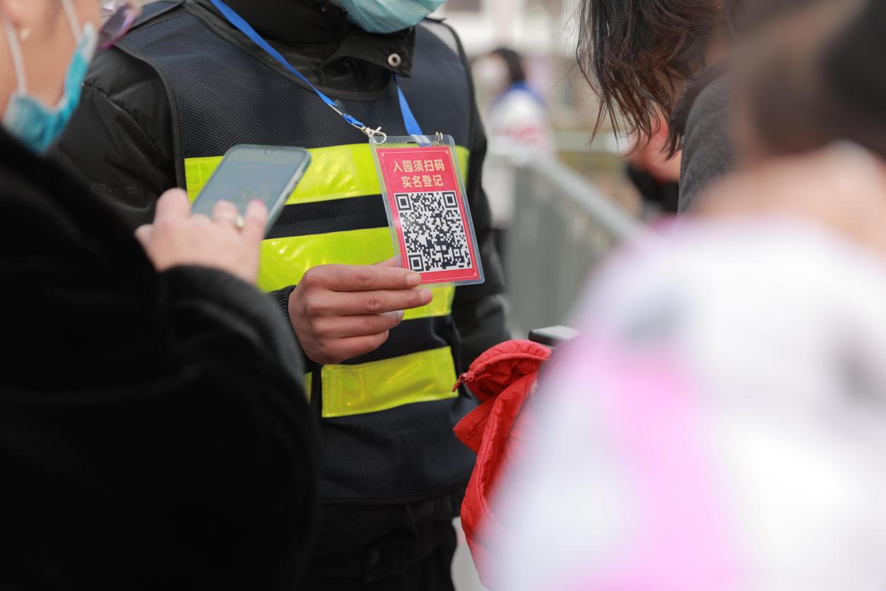 “打开手机里的健康码,测一下体温。”自夜场开放以来,每天晚上,景区实行闭环管理,每个进口处都会严格落实疫情防控举措,入园人员必须亮“健康码”、“行程码”+测温,同时提醒市民佩戴口罩保持安全距离,做好个人防护,避免扎堆聚集。据工作人员介绍,园区还实行消毒工作,每天安排两次消杀,管理人员会根据防疫要求和客流情况,必要时采取临时限流措施。并在景点开设了临时隔离点、核酸检测采样点和新冠病毒疫苗接种点,市民游玩、接种“两不误”。“真没想到逛个景点也能接种新冠病毒疫苗,真是太方便了。”今年62岁的王女士高兴地说。