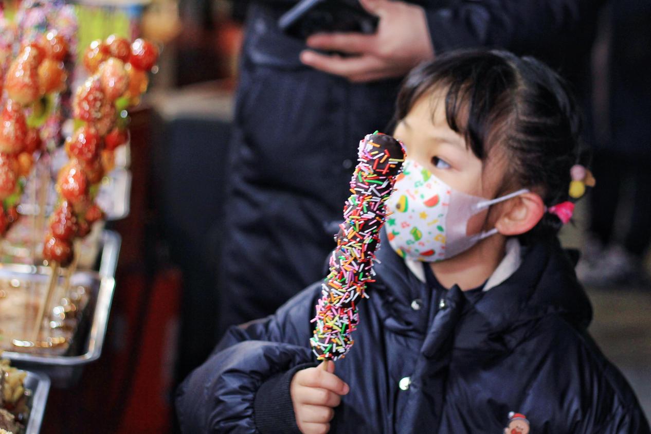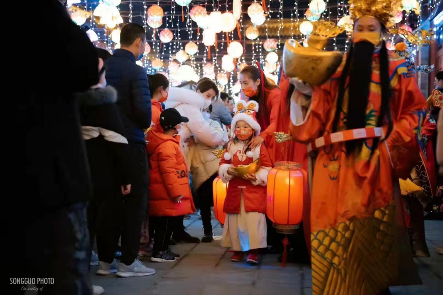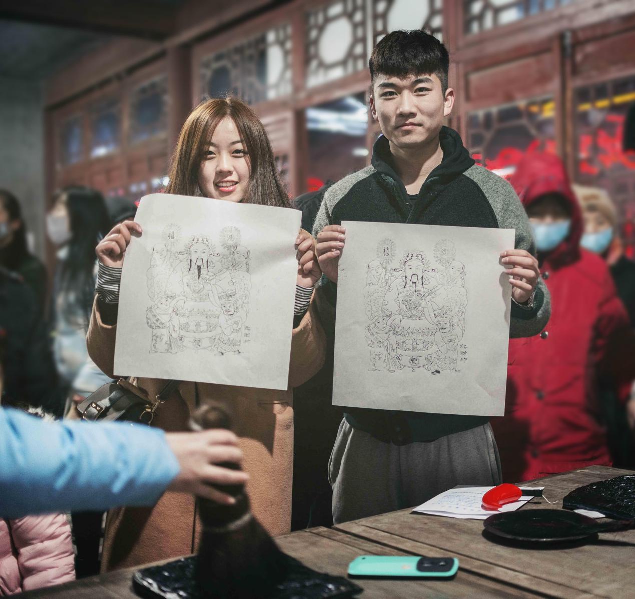 此外,印年画、扎风筝、画糖人、猜灯谜、品美食、看民俗展演……,让游客找回了儿时记忆的同时,也零距离感受着传统文化的魅力。