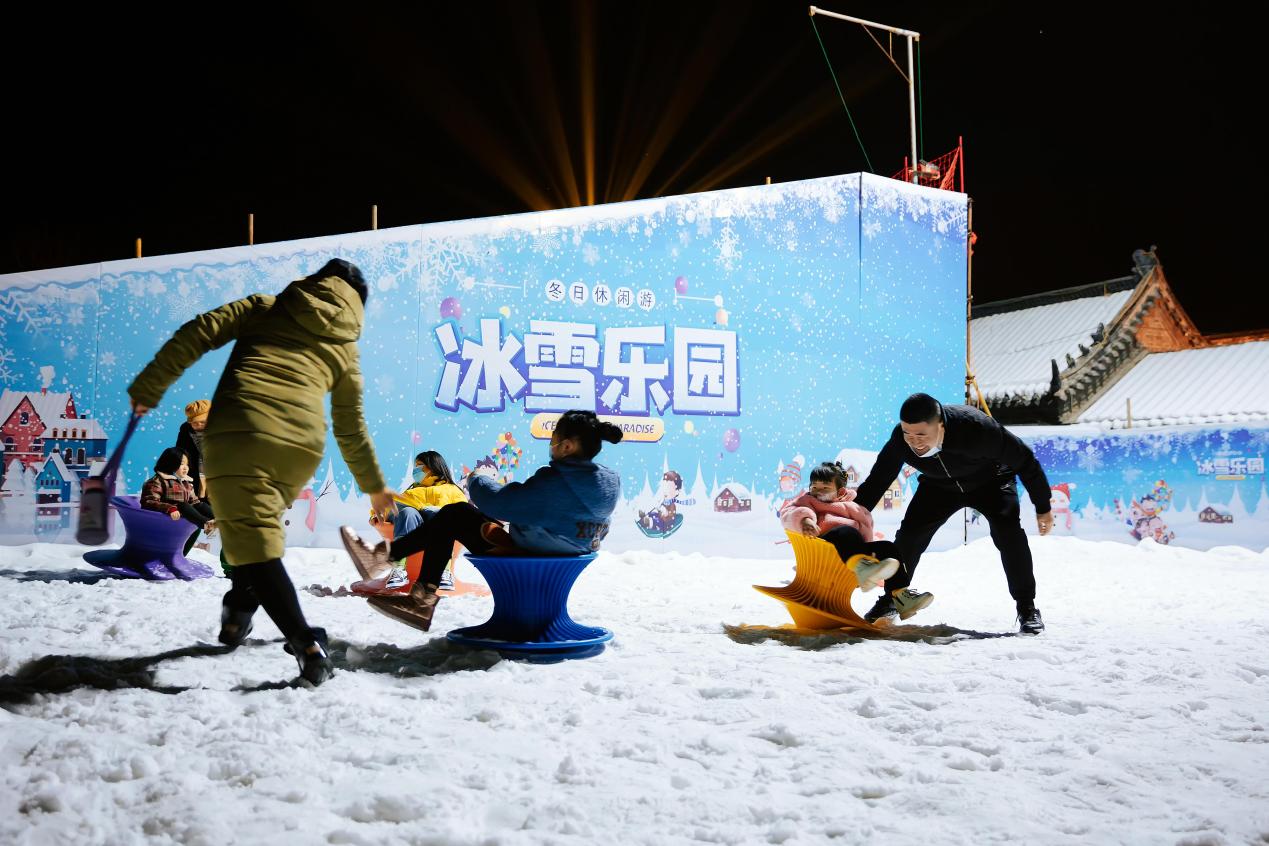 冷冰雪变成了“热运动”!为助力北京冬奥会,深入开展群众性冰雪运动,春节期间杨家埠大观园特别打造冰雪嘉年华活动,在杨家埠雪地公园配备雪地摩托车、雪圈、雪地转转,点燃人们参与冰雪游戏、冰雪运动的激情。家住经济区的欧阳女士说,正值北京冬奥会,虽然不能去现场,但是在民俗杨家埠能够玩一玩冰雪乐园,就觉得特别开心,也为冬奥助力!