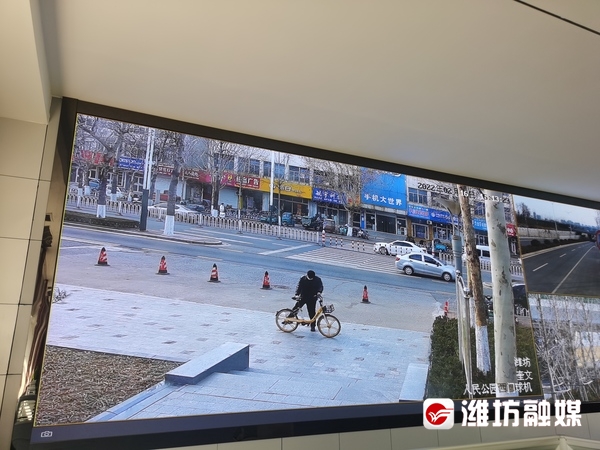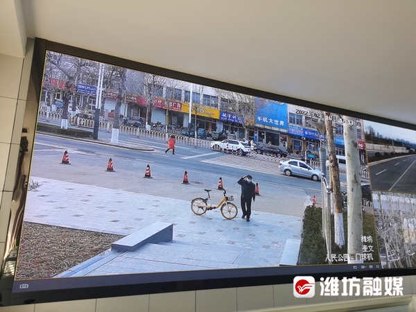 随后,记者来到潍坊市城市管理行政执法支队看到,这里的大屏幕上,有一块块分屏,实时显示着一些路段的情况,工作人员李媛媛正实时进行查看。监控视频中显示,在人民公园西门位置,一位市民骑着一辆共享单车,随意停放在路旁正要离开,李媛媛立即对其进行喊话,告知他此地不允许停放共享单车,在该位置往北大约三十米处,有共享单车停放点,请他到规范位置停放。通过监控视频能够看到,这位市民听到喊话后,抬头望了望,应该是看到了喇叭,立即点头示意自己知道了,并随即推着共享单车离开了现场。