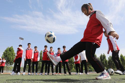 图为河南省焦作市温县一中学生在操场做“减压”活动。 新华社 徐宏星 摄