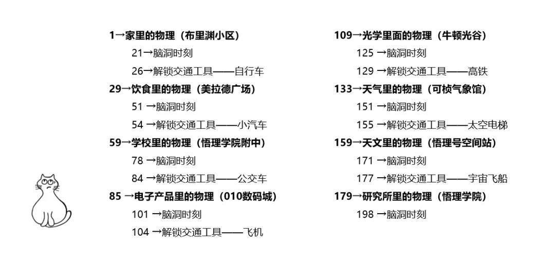 最终,物理君和拉他穿越的薛小喵经历了8个关卡、回答了200多个问题,经历了一场有趣的冒险。