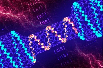 研究人员表示,他们或许可以借助碳纳米管制造出节能的纳米晶体管,以超越由硅制成的微处理器,但控制单个碳纳米管的“手性”(决定了碳原子的几何结构和电子结构)仍然是一个巨大的挑战。在最新研究中,他们通过加热和机械应变改变了金属纳米管片段的局部“手性”,设计并制造了碳纳米管分子内晶体管。
