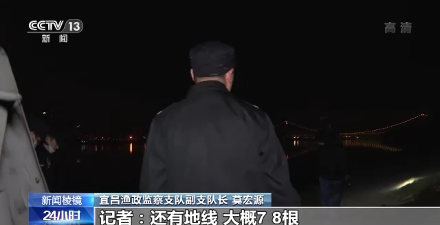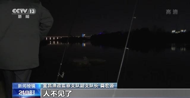 2021年11月14日晚上,宜昌渔政监察支队在江边巡查过程中发现的违规垂钓现象。