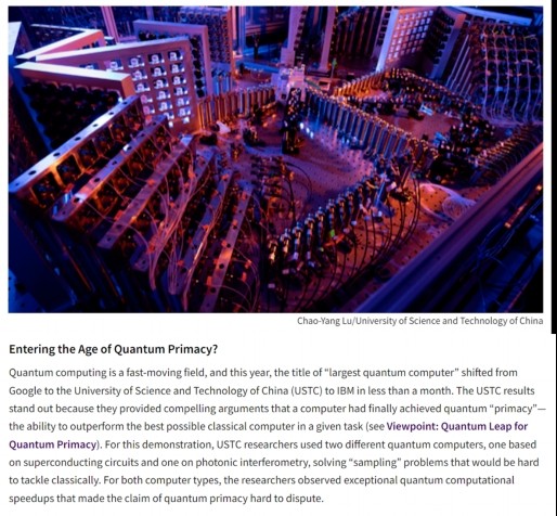 这一系列成果使我国成为目前国际上唯一同时在两种物理体系均达到“量子计算优越性”里程碑的国家。美国物理学会评价认为,中国科学技术大学研究团队在与谷歌、IBM等竞争中脱颖而出,提供了令人信服的实验论据,在他们的超导和光学量子计算机展示了卓越的量子计算优越性。