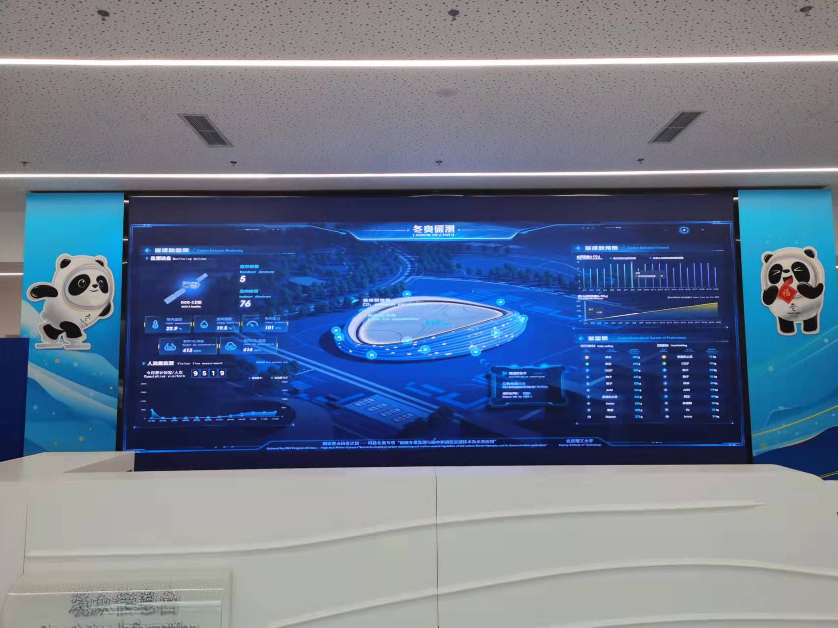 (国家速滑馆内的冬奥碳测平台可视化大屏)