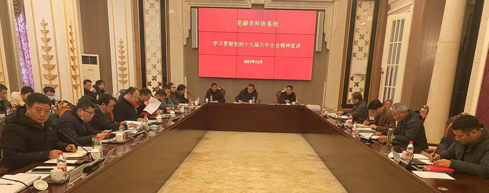 12月30日上午,全市科协系统学习贯彻党的十九届六中全会精神宣讲报告会举行,市科协机关全体人员、各县市区科协主要负责人、芜湖科技馆负责人等参加宣讲会。
