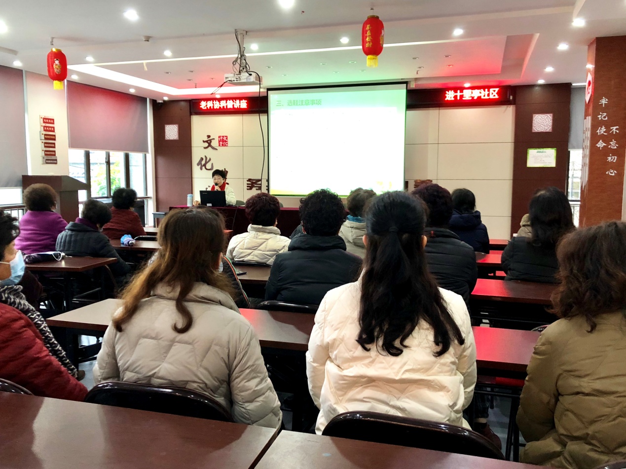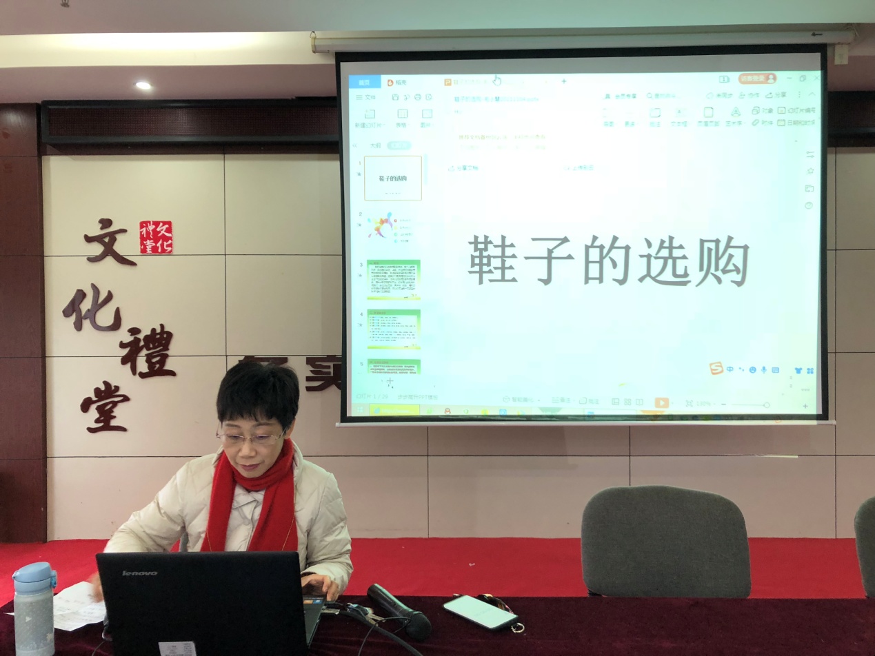 2月19日下午,温州市科学文化宣讲团走进鹿城区南郊街道十里亭社区,为社区各年龄段的居民 送上“鞋子的选购”讲解内容,宣讲团的讲师是市老科协化工专委会毛小慧教授级高级工程师,参加听课的居民有30余人。
