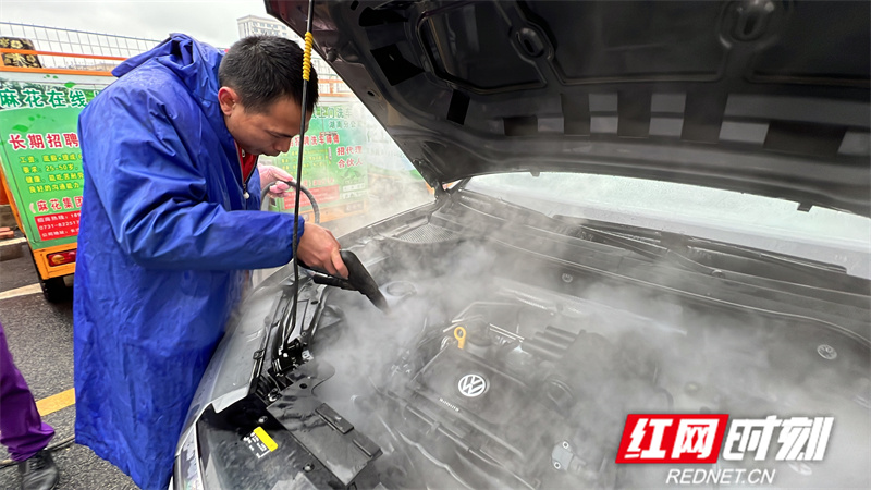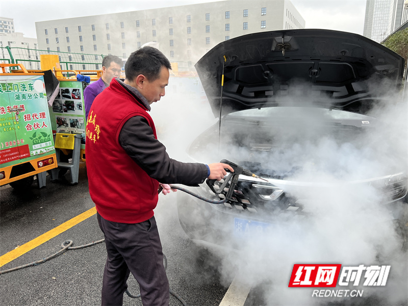一个APP、一辆电瓶车、一身红马甲的洗车师傅。走进天心软件产业园,一排排“小三轮”整齐的停靠在麻花洗车平台楼下,看似小巧简单的东西,里面却别有洞天。负责人告诉记者,这便是该平台移动式蒸汽洗车设备。上门洗车,水从何而来?两三瓶500ml的矿泉水,足以洗净一整辆轿车。“相比传统洗车行,我们的用水量可节省98%。”吴双宝分享时谈到,这些都得益于该设备强大的科技支撑。通过纯物理饱和蒸汽的清洗方式,移动式蒸汽洗车设备以专业的压力和温度,全面的对汽车每个细微部位进行清洁,无需任何化学添加,就能在除污的同时做到杀菌、除螨、祛异味,将简单的清洗提高为精洗,更密切关系到车主的健康。普通水洗无法触及的发动机死角,该设备也可做到360°无死角清洗,达到更高的清洁度。此外,蒸汽洗车在清洗过程中不产生任何废水,不伤害车漆,不污染环境,在解决了传统水洗浪费水资源的基础上,也实现了无废水无污染的新升级。