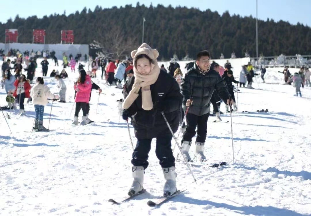 穿好雪靴、戴上墨镜、踏上雪板,23岁的刘佳雯用力一推雪杖,从坡道顶部快速滑下,而身边不断有人重复着这样的动作。“没想到,徐州的滑雪场现在也这么热闹。”作为一名热衷户外运动的大学生,刘佳雯已经是第三次来到徐州市贾汪区的大景山滑雪场。