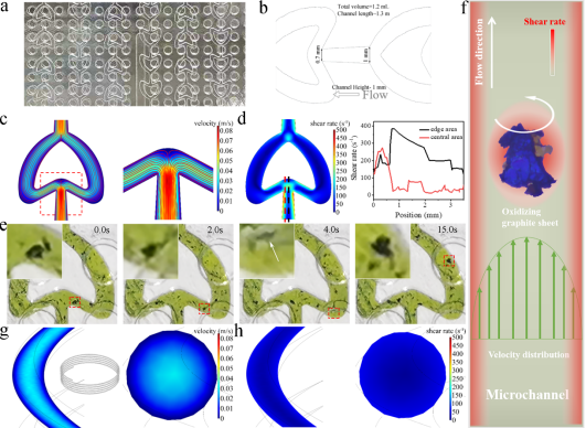 在此基础上,研究人员还验证了在微通道中对氧化石墨烯进行还原、组装的能力,并展示了氧化石墨烯产物的导热导电性能,为利用微流体技术实现氧化石墨烯的制备与应用奠定基础。