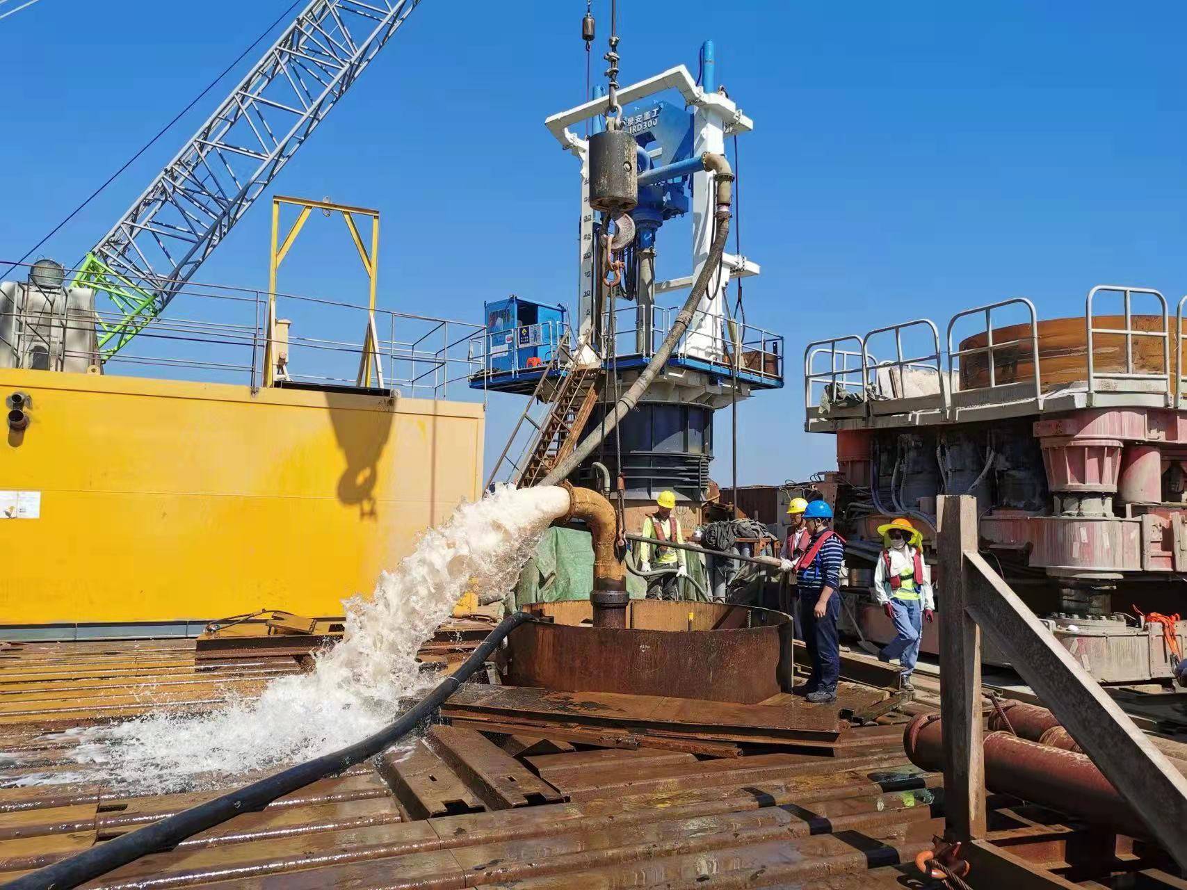 JRD300型气举反循环钻机是一套以全液压控制的嵌岩钻机,原理是利用液压旋转动力头提供足够的扭矩及旋转速度, 再加上钻具自重及加压液压油缸的下压力,通过钻头上滚刀实现对岩面进行位移及压破功效。