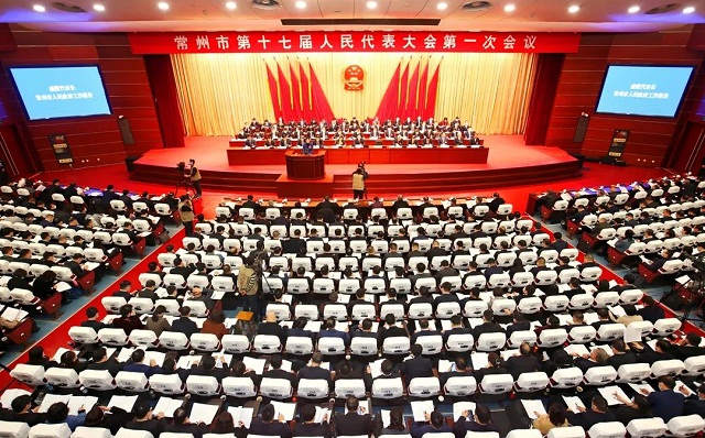 上午9时,陈金虎宣布:常州市第十七届人民代表大会第一次会议开幕!全体起立,唱国歌。