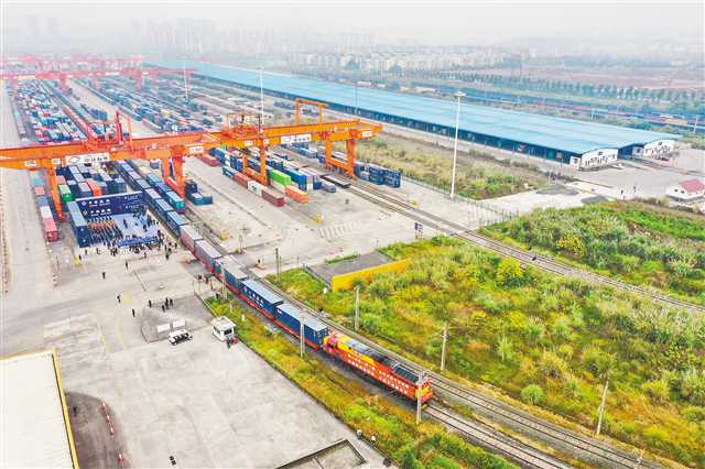 值得一提的是,重庆还发挥陆海新通道运营组织中心重要作用,扎实推动省际协商合作,牵头会同陕西、云南、宁夏、湖南等地开行至老挝万象联动班列。