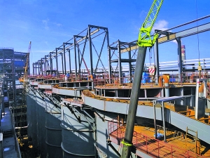 在年产20万吨铝基高温工业材料综合利用产业基地项目现场,随着吊机和工人的紧密配合,基地主建筑的“四梁八柱”逐渐成型,生产所需的大型设备球磨机也稳稳落地。该项目总投资超4亿元,占地约100亩,建筑面积32016平方米,将建设原料处理车间、成品加工车间、细碎车间、粗碎车间、备配料车间、合成车间、碎选车间、加工车间、综合办公楼等,可年产20万吨铝基高温工业材料,计划今年内建成投产。