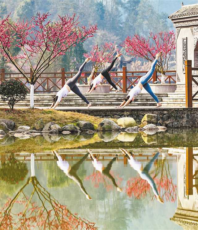 2月27日,南川区大观镇梅华园,市民在练瑜伽。罗川摄
