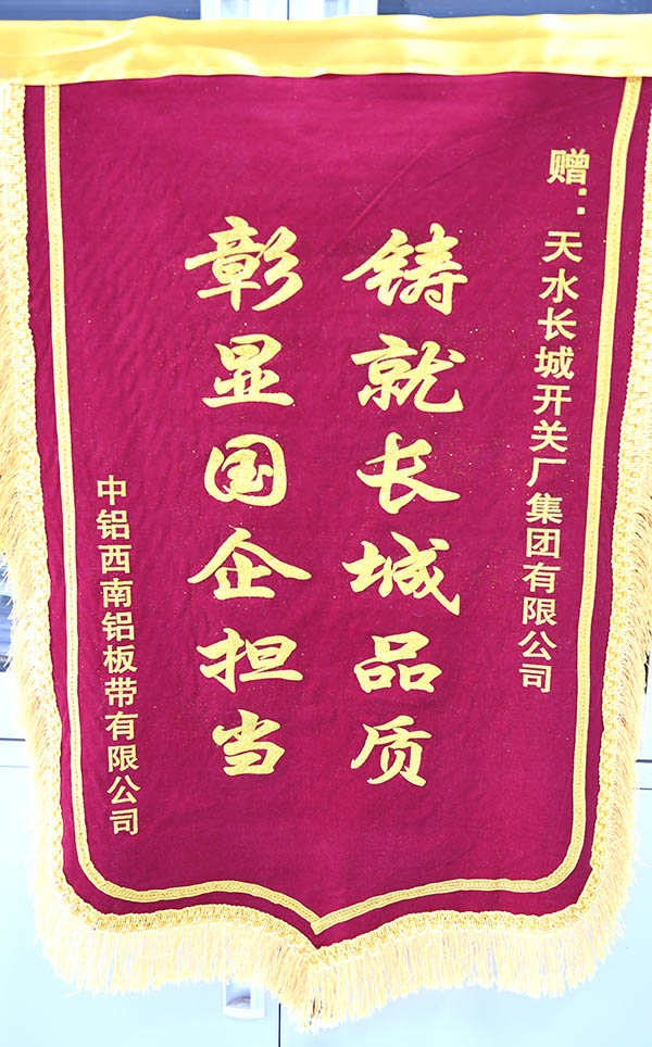 长开厂集团公司收到中铝西南板带有限公司感谢信和锦旗
