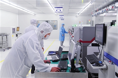 宁夏储芯集成电路产业研发中心项目内工作人员各司其职忙科研与生产(2月28日摄)。