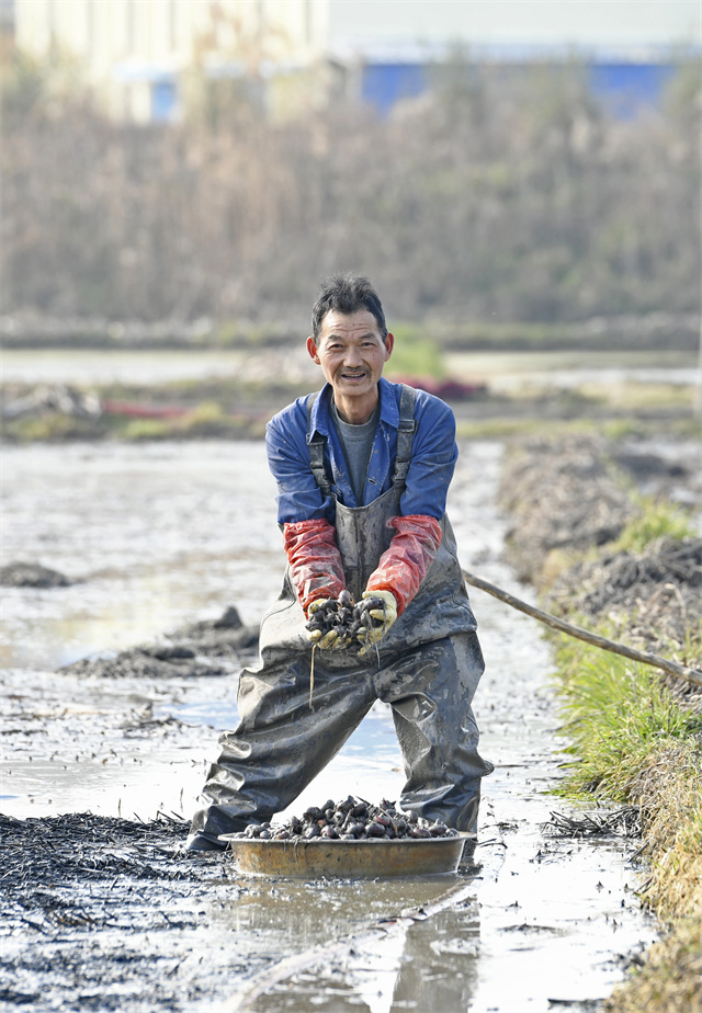 老焦来常州打工多年,8年前和妻子在横山桥新安村承包了十几亩地,其中8亩种植荸荠。现在气温回升,荸荠每天产量达1000多斤。