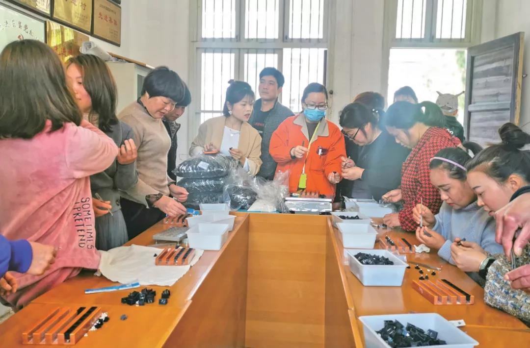 “致富车间”入驻龙西乡砩头村,村民争相学习装搭技术。戚梅丽 摄(资料图)