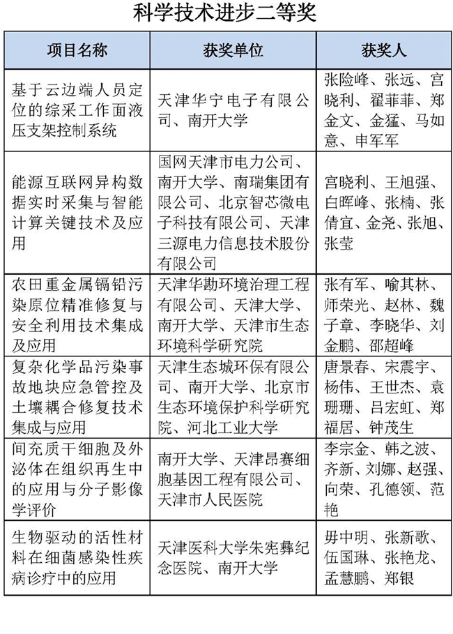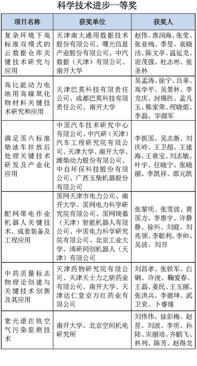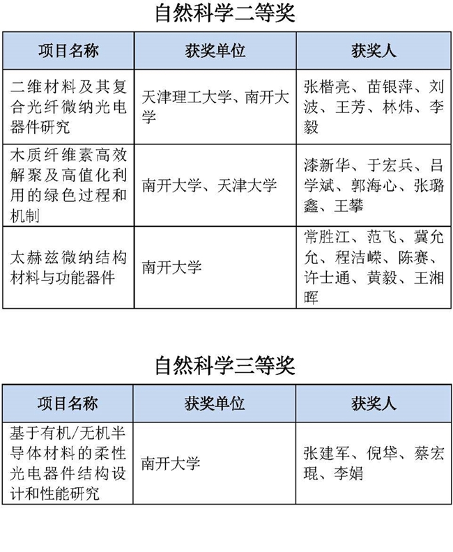 此外,南开大学作为第一完成单位获得自然科学二等奖2项,科技进步二等奖、自然科学三等奖、科技进步三等奖各1项;作为合作单位参与完成的项目荣获科学技术进步特等奖、自然科学二等奖各1项,科学技术进步一等奖、科学技术进步二等奖各5项。