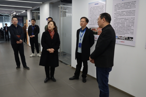 洪露同志首先参观了产业园一楼展厅,并听取了部分园区入驻企业生产经营情况汇报,在未来发展规划、中心优势建立等方面与企业负责人进行了深入沟通。