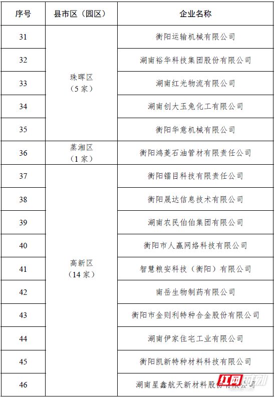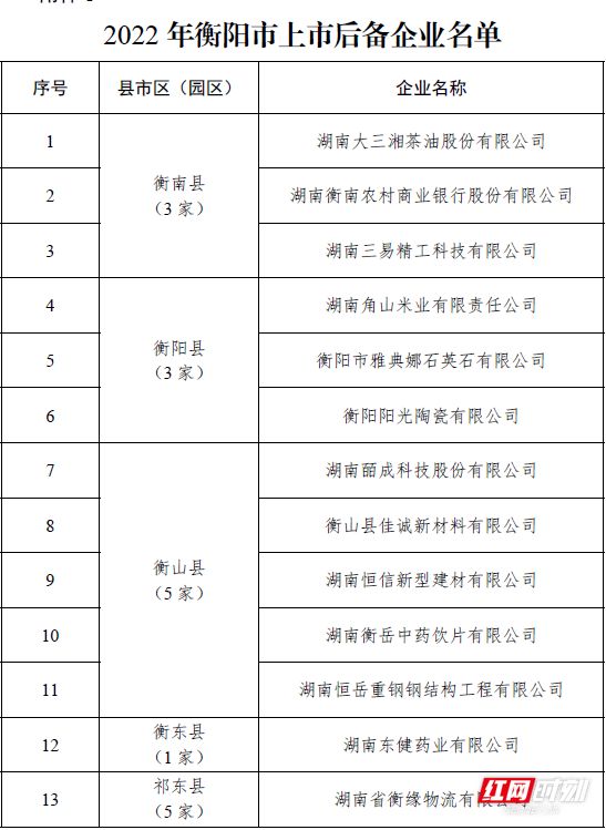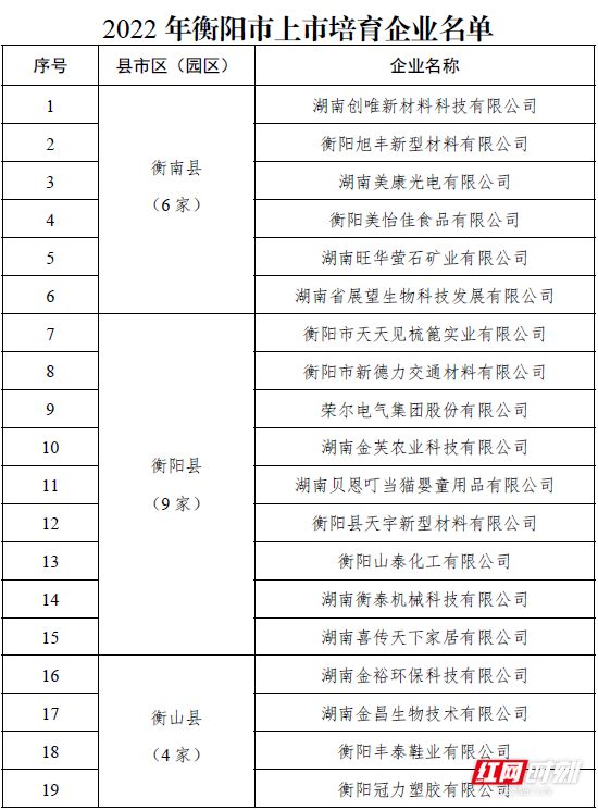最新!衡阳发布161家上市后备企业与上市培育企业名单