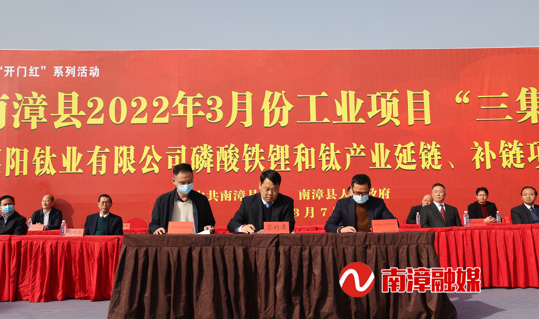 3月7日上午,我县举行2022年3月份工业项目三集中暨龙佰襄阳钛业磷酸铁锂和钛产业延链、补链项目开工仪式。集中签约、开工、投产项目29个,合同投资总额66.89亿元,奋力冲刺首季“开门红”。