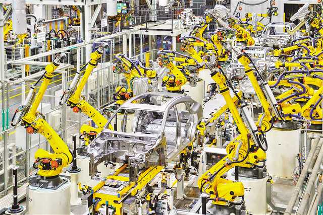 重庆金康两江智能工厂焊装车间,机器人有条不紊地在生产线上忙碌。(资料图片)记者 张锦辉 摄/视觉重庆