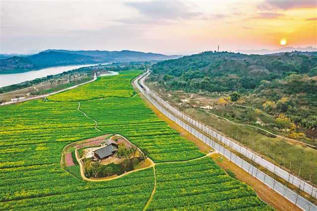 广阳岛,夕阳下的油菜花田。广阳岛已成为重庆的一张“绿色”名片。(资料图片)记者 谢智强 摄/视觉重庆