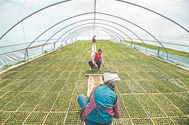 3月2日,奉节县平安乡昌霖辣椒种植专业合作社,农户正在大棚里忙碌。