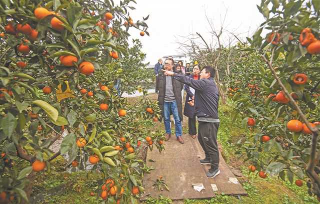 3月4日,渝北区统景镇江口村,规模化种植的柑橘产业带让田园山乡更迷人。