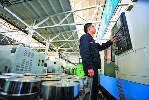 贵州枫阳液压有限责任公司加工车间内,技术人员正在调试生产设备的参数。 贵阳日报融媒体记者 石照昌 摄