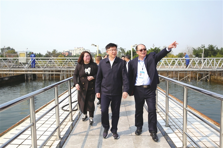 3月11日,永川区委书记张智奎带队调研全区水利工作,并开展巡河。图为张智奎一行在侨立水务三水厂调研。