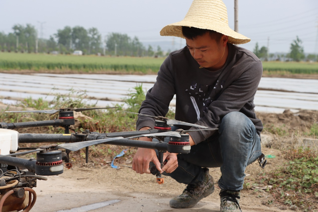 贾强经历了从机械化农业到智慧化农业的过渡,这些年陆续投入200多万元配备现代化的农机设备和先进的仓储设施。早在2015年,他就购进了邳州市第一台农业科技无人机,当时他在深圳封闭学习了20天,回来后又培训了一批飞手,解决了一批农民的就业问题。在完成自己家农田的植保之后,还能为其他农户服务。