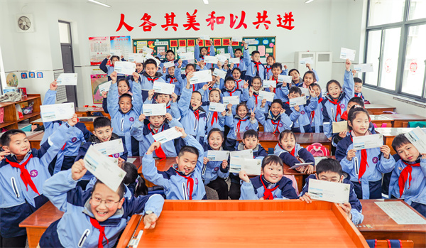 去年10月,常州经开区小学与陕西省安康市平利县兴隆镇中心小学在经开区社会事业局的“撮合”之下结对共建,此次书信交流活动也是两所学校共建后的首次交流活动。在老师、家长的指导下,同学们体验了写信、折信纸、贴邮票、邮寄这一整套过程,所写的140余封书信也在年前顺利到达了平利县兴隆镇中心小学。由于寒假、疫情等因素的影响,来自陕西的回信历经2个多月,终于来到经开小同学们的手中。