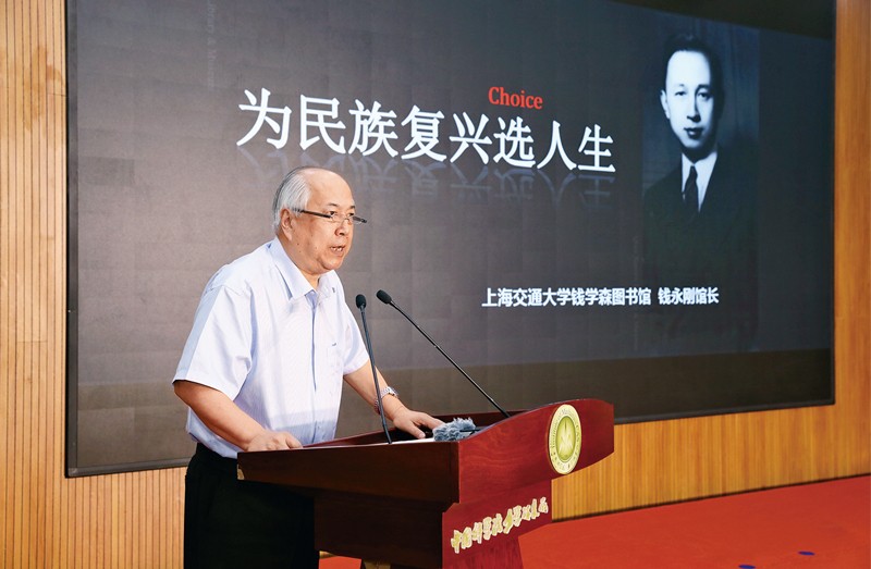 2021年7月15日,中国科学院在该院力学研究所为首个弘扬科学家精神示范基地授牌,并为以钱学森、赵九章、施雅风等老科学家命名的首批三支科技攻关突击队授旗。图为活动现场,钱学森之子钱永刚讲述钱学森的五次人生选择。新华社记者 金立旺/摄