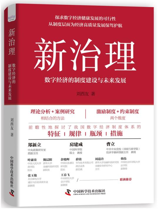 对于数字经济这种新的经济形态,人们在享用其带来的便捷和收益的同时,怎样从制度体系建设层面为其健康发展保驾护航?这一问题具有很强的现实意义。刘西友同志的这部新作——《新治理:数字经济的制度建设与未来发展》适时推出,不但梳理了数字经济的发展脉络及其在世界范围内的发展现状,还从马克思主义政治经济学角度探讨了数字经济制度体系建立的可行性,重点分析了数字经济制度体系建设的理论基础、面临的问题、国际背景及发展前景。