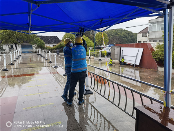 常州移动党员先锋队接到通知后,第一时间启动对接工作,从市卫健委、区卫健局到各街道党政办,分层分级沟通递交方案,获得认可后即刻安排准备视频监控安装物料,着手安装工作。截至16日中午,常州移动已完成新北区新桥、龙虎塘等乡镇核酸检测点位百余套监控设备的安装部署,各监控点位信号正常,视角理想,可为后期流调工作提供可靠依据。