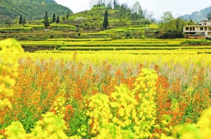 下麦城村的五彩油菜花。 骆娅 摄
