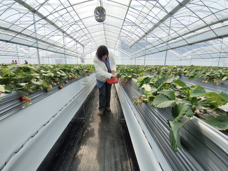 3月17日一大早,郑计廷就来到自家的草莓大棚内,“现在正是草莓第二茬果上市的季节,每天都要来看看草莓长势和果实成熟度,好及时采摘出售。”郑计廷是贾汪现代农业产业园区郑庄村草莓种植户,已经有13年的草莓种植经验了。郑计廷一家4口都从事草莓产业,每年的收入能达到20万元左右,置办了房子、车子,生活过得红红火火。