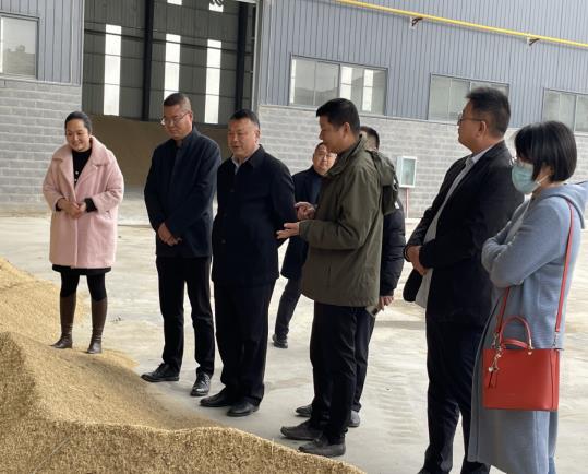 闫坤(左二)一行考察南漳县育超泉知稻有机大米生产车间