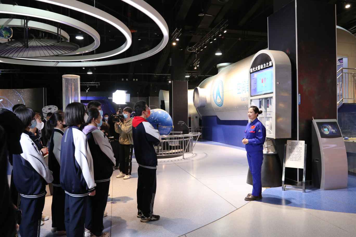 “同学们,大家好,这里是天宫课堂山西省科技馆分课堂,我身后的这件展品……”14点45分,随着画面切换,山西省科技馆“走进太空”特色活动开始了。四十八中的学生正跟随着辅导老师的脚步参观“走向未来”展厅,一会儿模拟神舟飞船发射指控中心场景,一会儿扮演“航天员”走进飞船内部了解航天员的工作,还进入“空间站”与“航天员”一起做重力实验,从中感受祖国航天事业的辉煌成就和航天人的艰辛历程,为后续的“天宫授课”环节营造了求知探索的氛围。