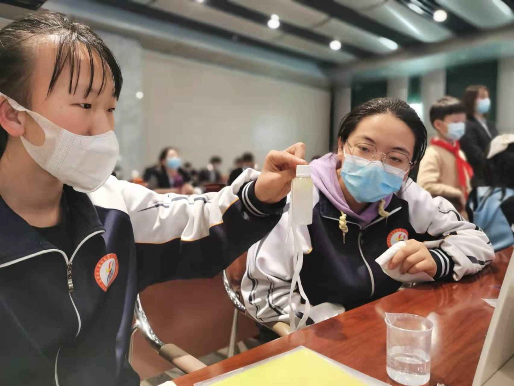 学生们正在与太空同步做水油分离实验。摄影 李清波