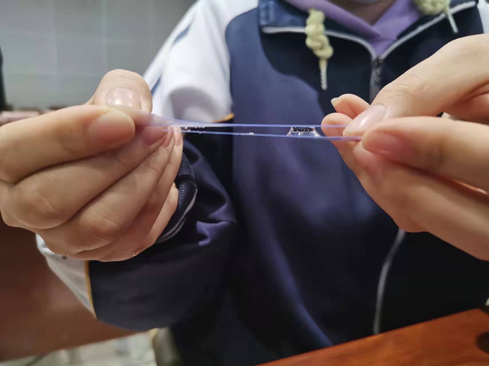 学生们正在与太空同步做液桥演示实验。摄影 李清波