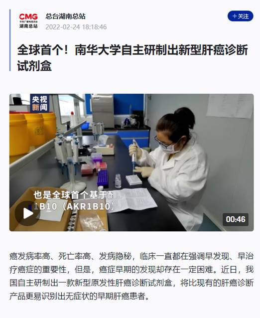 【央视新闻】全球首个!南华大学自主研制出新型肝癌诊断试剂盒